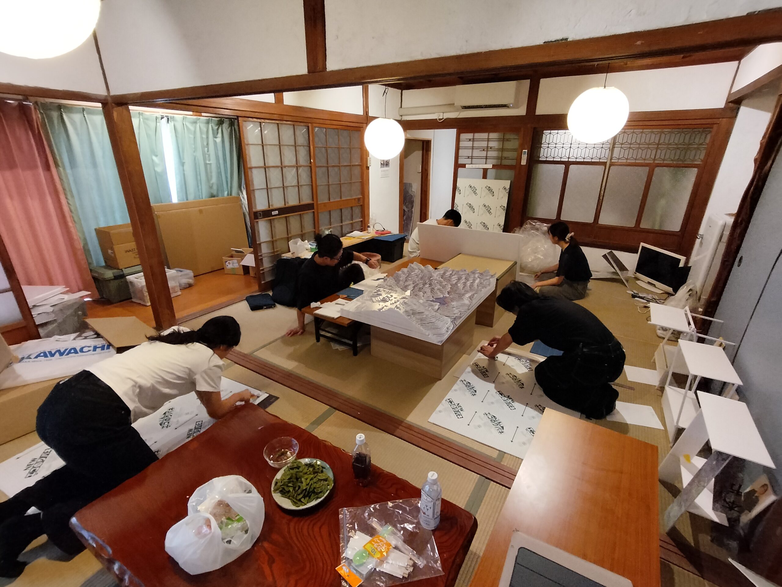 竹原集落で学生時代に地域活動に励んでくれたメンバーが再訪し、集落模型ののり付け作業を進めます。