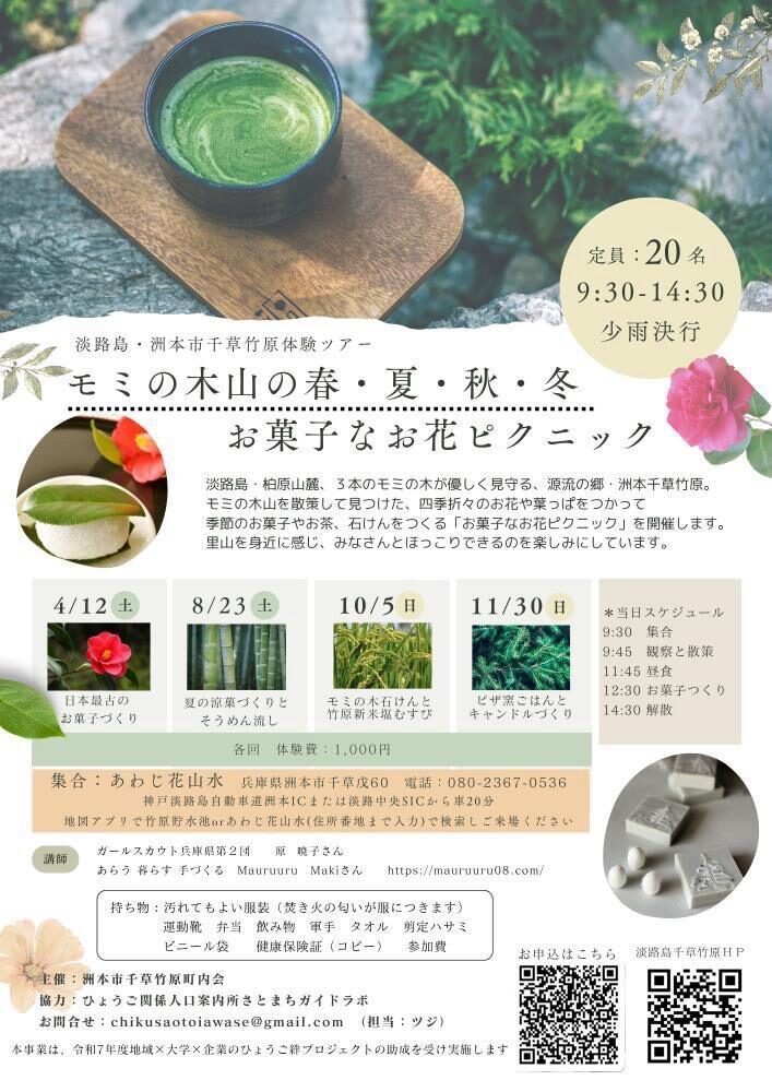洲本市千草竹原集落では、里山の自然と暮らしを体験する取り組みとして「モミの木山 お菓子なお花ピクニック」 を年間を通して開催しました。